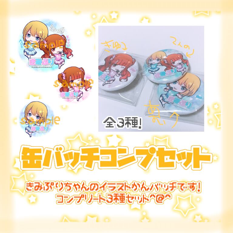 ❤︎きみぷりちゃん初の缶バッチ3種コンプリートセットです❤︎